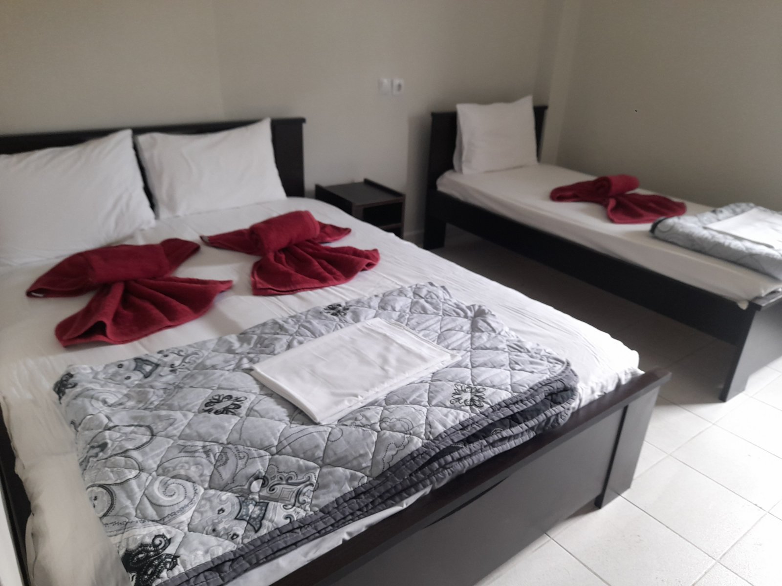 VILA ATLANTIC se află la o distanță de aproximativ 300 m de mare. Vila dispune de camere duble, triple și triple cu extra bed (patul suplimentar este recomandat exclusiv copiilor cu vârsta cuprinsă între 5 și 12 ani). Toate camerele dispun de aparat de aer condiționat, TV satelit, WI-FI, chicinetă complet echipată (pe un perete al camerei), frigider, balcon.