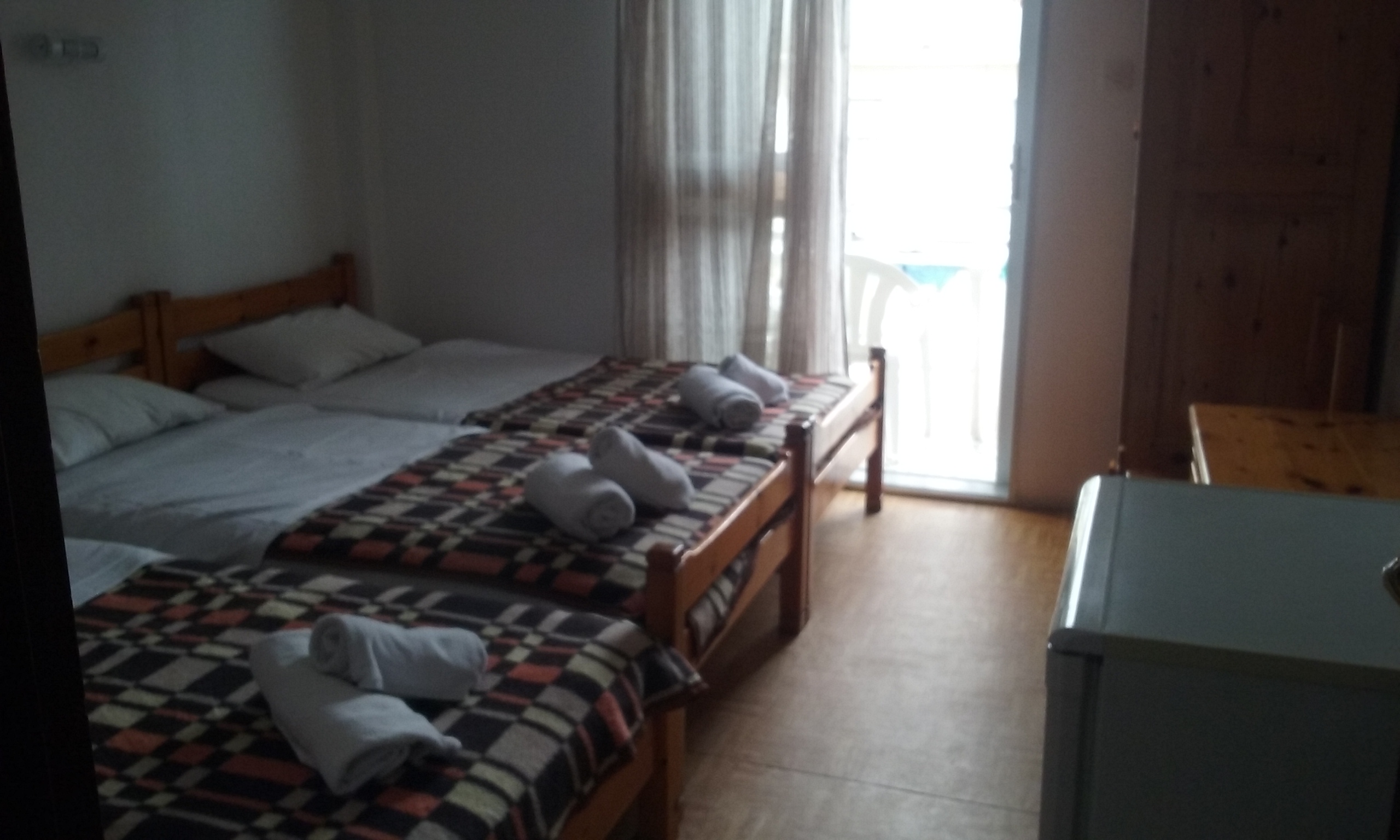 Dotări camere duble/triple: TV, aparat de aer condiționat, baie cu duș, balcon și frigider.