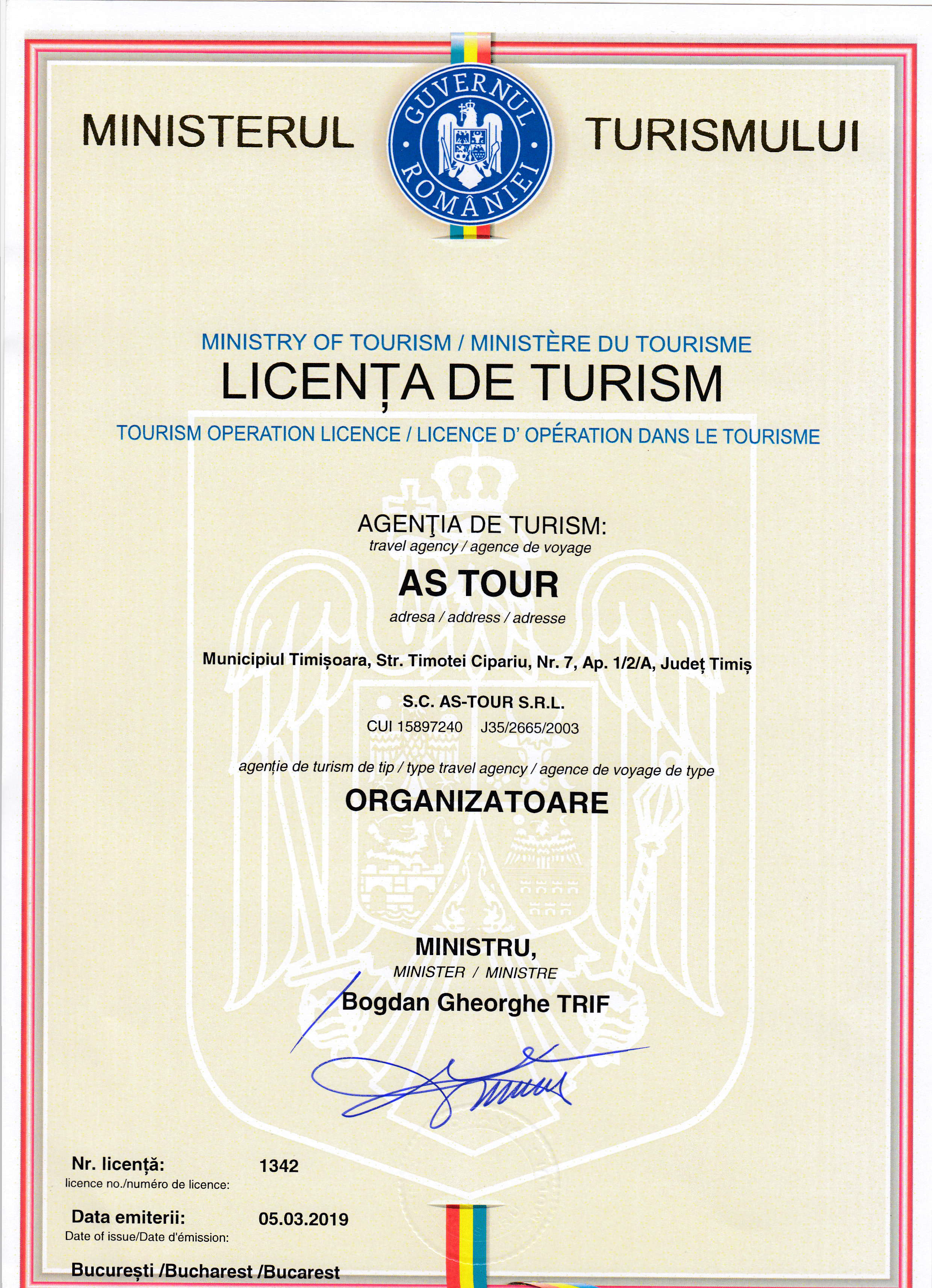 Agenția de Turism As Tour are la bază munca și experiența unui manager ce lucrează în turism de peste 25 de ani, un manager ce simte turismulși îl trăiește, transformându-l în propria-i viață, un manager care a reușit să adune în jurul lui o echipă de o mare valoare profesională.